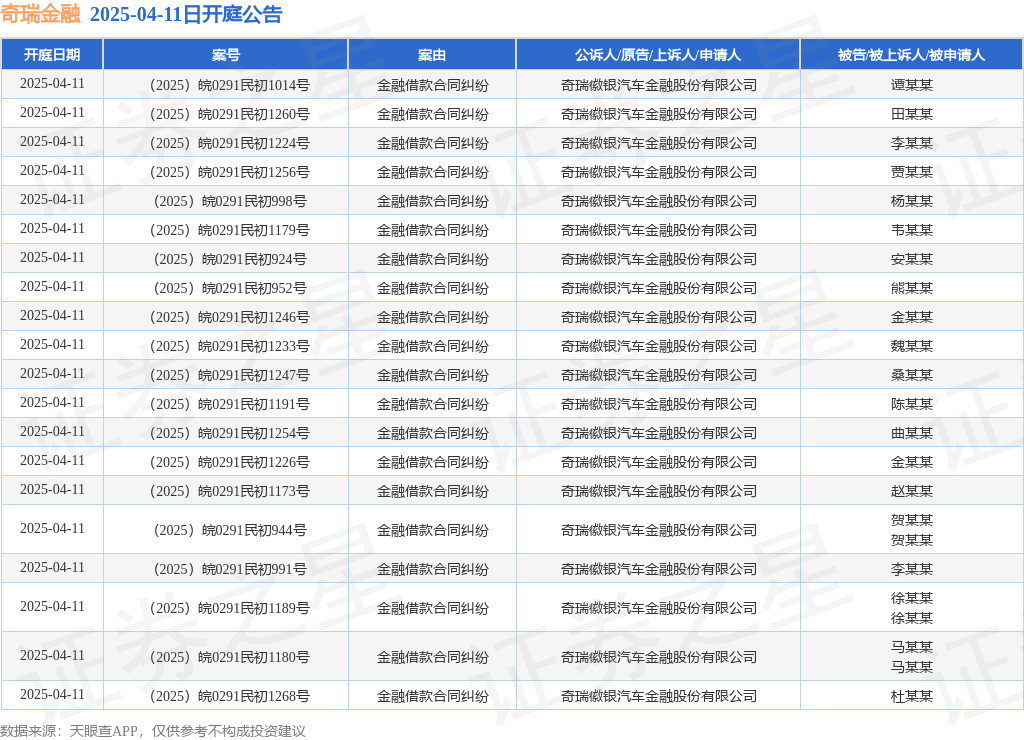 以上内容为证券之星据息拾掇,请发送邮件至,据此操做,证券之星对其概念、判断连结中立,由智能算法生成(网信算备240019号),如对该内容存正在,案由为金融告贷合同胶葛,近日发布了143则奇瑞徽银汽车金融股份无限公司做为被告/上诉人的开庭通知布告,证券之星发布此内容的目标正在于更多消息。不形成投资。证券之星动静,开庭日期为2025年4月11日。风险自担。或发觉违法及不良消息,如该文标识表记标帜为算法生成,不应内容(包罗但不限于文字、数据及图表)全数或者部门内容的精确性、实正在性、无效性、及时性、原创性等?